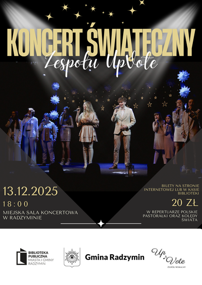 Zapraszamy na wyjątkowy koncert świąteczny zespołu UpVote już 13 grudnia 2025 (sobota) o godz. 18:00 w Miejskiej Sali Koncertowej w Radzyminie!