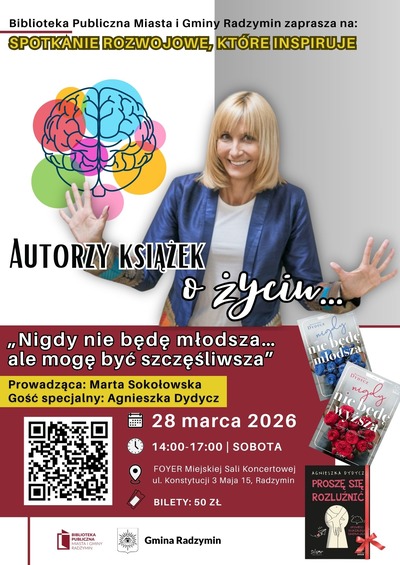 Zapraszamy na inspirujące spotkanie z Agnieszką Dydycz – pisarką, mentorką i praktykiem dobrego życia, które odbędzie się 28 marca o godz. 14:00 w Bibliotece w Radzyminie. Wydarzenie realizowane jest w ramach cyklu „Autorzy książek o życiu…” i ma charakter rozwojowy – to przestrzeń do refleksji, rozmowy i poszukiwania własnych odpowiedzi.